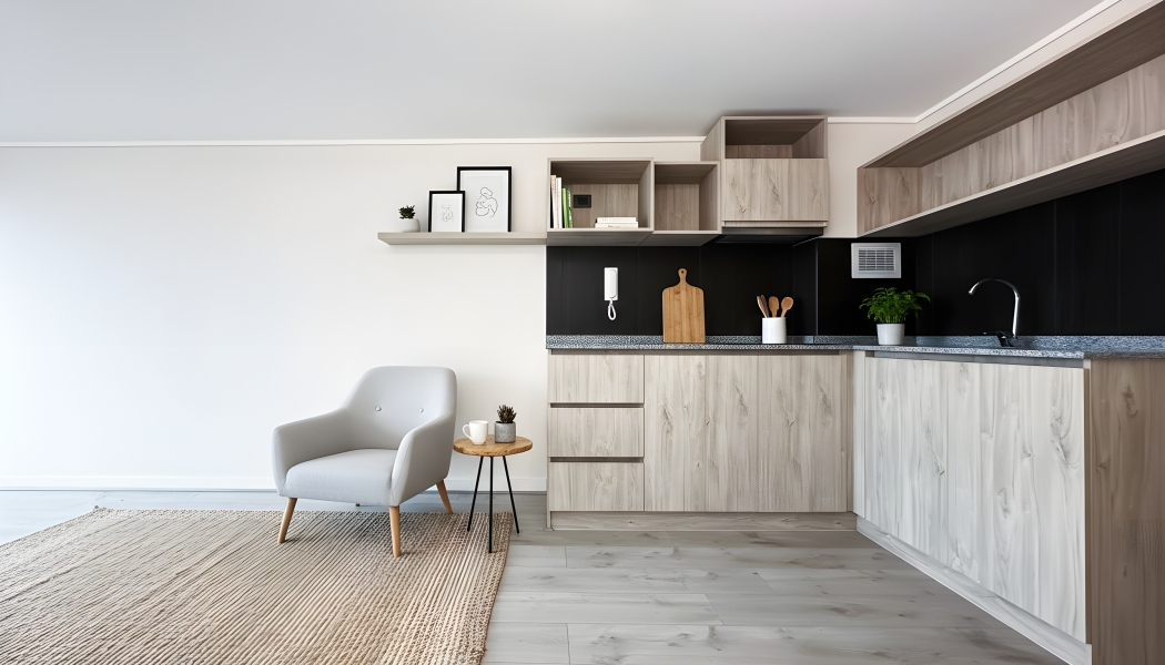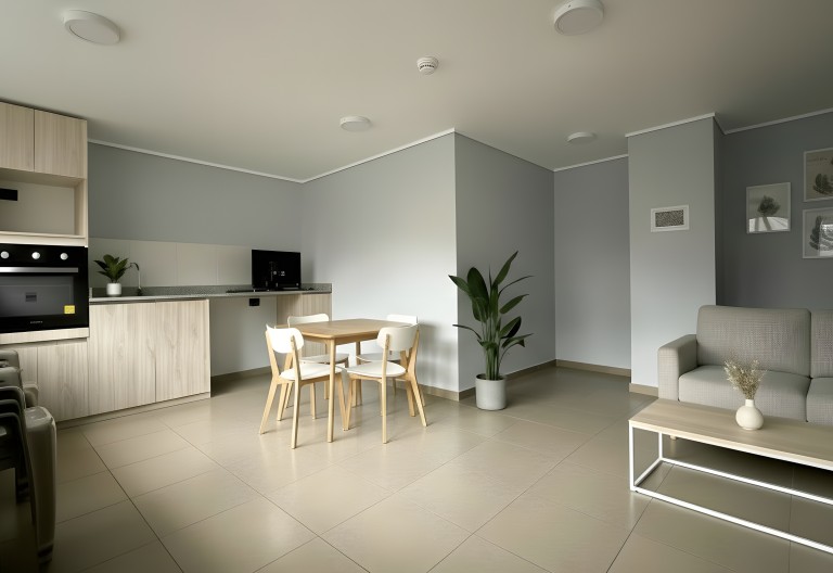 El edificio cuenta con quincho y patios privados, algo especial para quienes quieran vivir la experiencia de compartir junto a familiares y amigos. Terminaciones Piso fotolaminado Ventanas PVC Papel mural Muebles cocina de modernos diseños Encimera, horno eléctrico y campana Agua caliente por termo eléctrico